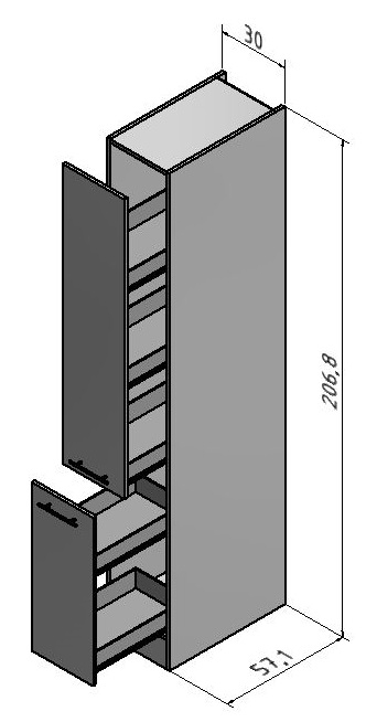 Der Optifit Maxi Apothekerschrank mit einer Höhe von 206,8 cm und einer Breite 30 cm schafft Ordnung in deiner Küche. In den vier Fächern, verteilt auf 2 Apothekerauszüge, lassen sich Gewürze, Backutensilien, Soßenfläschen, Essig und Öle wunderbar verstauen. Dank der Auszüge fällt das lästige nach hinten greifen weg, du hast uneingeschränkten Zugriff auf Utensilien die ganz hinten im Auszug sind. Da es sich um einen Maxischrank mit einer Höhe von 206,8cm handelt, wird der Raum in deiner Küche optimal genutzt. Das Motto unseres Apothekerschranks lautet: "Gut verstaut und trotzdem griffbereit!"