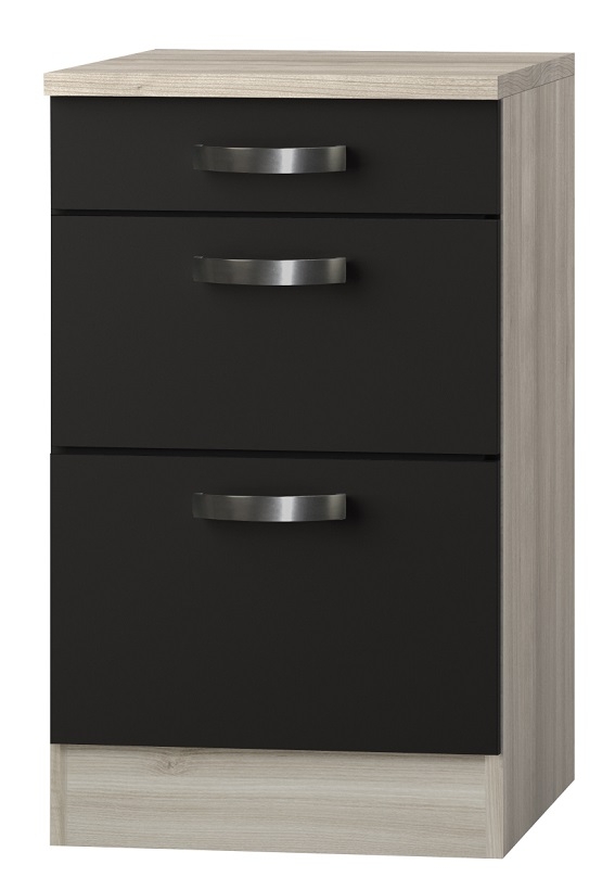 Der 50 cm breite Küchen-Unterschrank von Optifit bietet mit einer Schublade und zwei Auszügen optimalen, geordneten Stauraum. Die obere Schublade kann mit mit dem passenden Besteckeinsatz ideal zum Aufbewahren von Gabeln, Messern, Löffeln etc. verwendet werden. Im unteren Bereich bietet der Schubladenunterschrank zwei Auszüge, in der du geordnet Küchenutensilien verstauen kannst. Über unseren Konfigurator können die Schublade und die beiden Auszüge mit Dämpfern versehen werden.. Ebenso bieten wir den passenden Besteckeinsatz im Konfigurator an.
