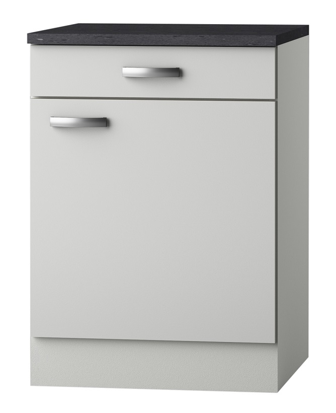 Der 60 cm breite Unterschrank von Optifit ergänzt deine Küche ideal mit Stauraum. Der Unterschrank hat im oberen Bereich eine Schublade die sich mit dem passenden Besteckeinsatz ideal zum Aufbewahren von Gabeln, Messern, Löffeln etc. eignet. Im unteren Bereich hat er eine zur Seite aufschwingende Tür die natürlich flexibel mit Anschlag links oder Anschlag rechts montiert werden kann. Hinter der Tür befindet sich ein höhenverstellbarer Einlegboden, der es ermöglicht, den Stauraum in den beiden Fächern ideal zu nutzen. Über unseren Konfigurator kannst du die Tür mit Dämpfern versehen. Ebenso bieten wir den passenden Schubladendämpfer im Konfigurator an.